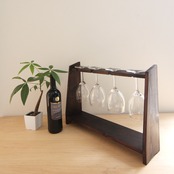 グラスを吊って埃を防ぎ、飾る事ができるようにデザインしています。